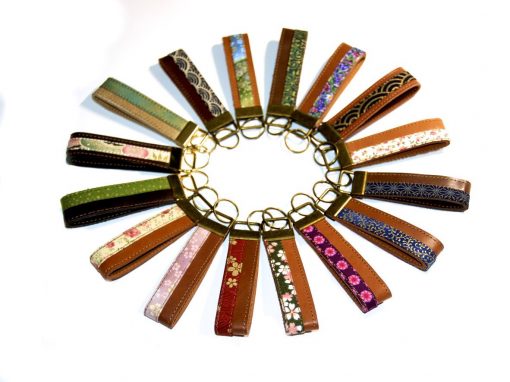 Diese eleganten Schlüsselanhänger aus Leder mit Stoffapplikation können Sie nach Ihrem Geschmack